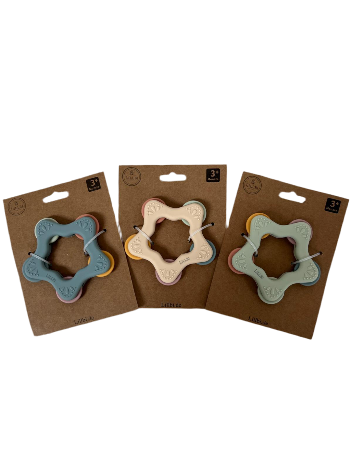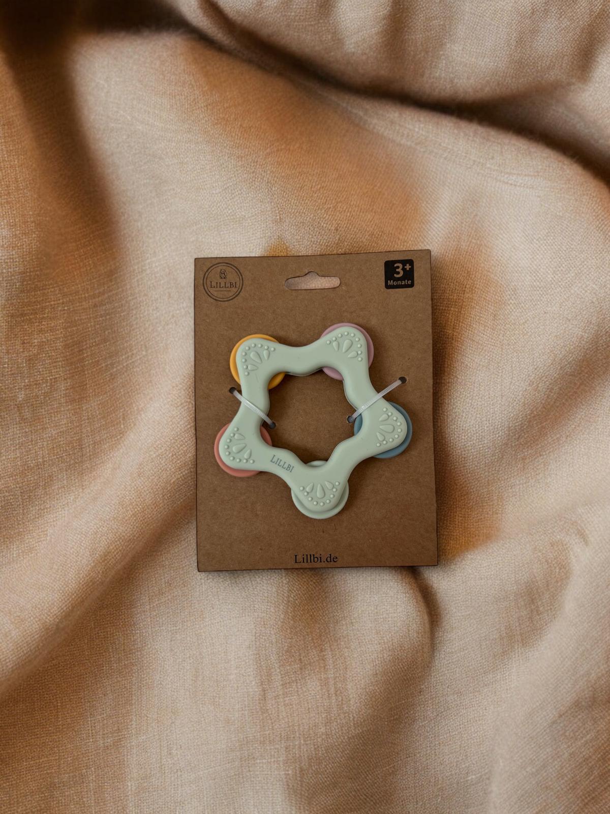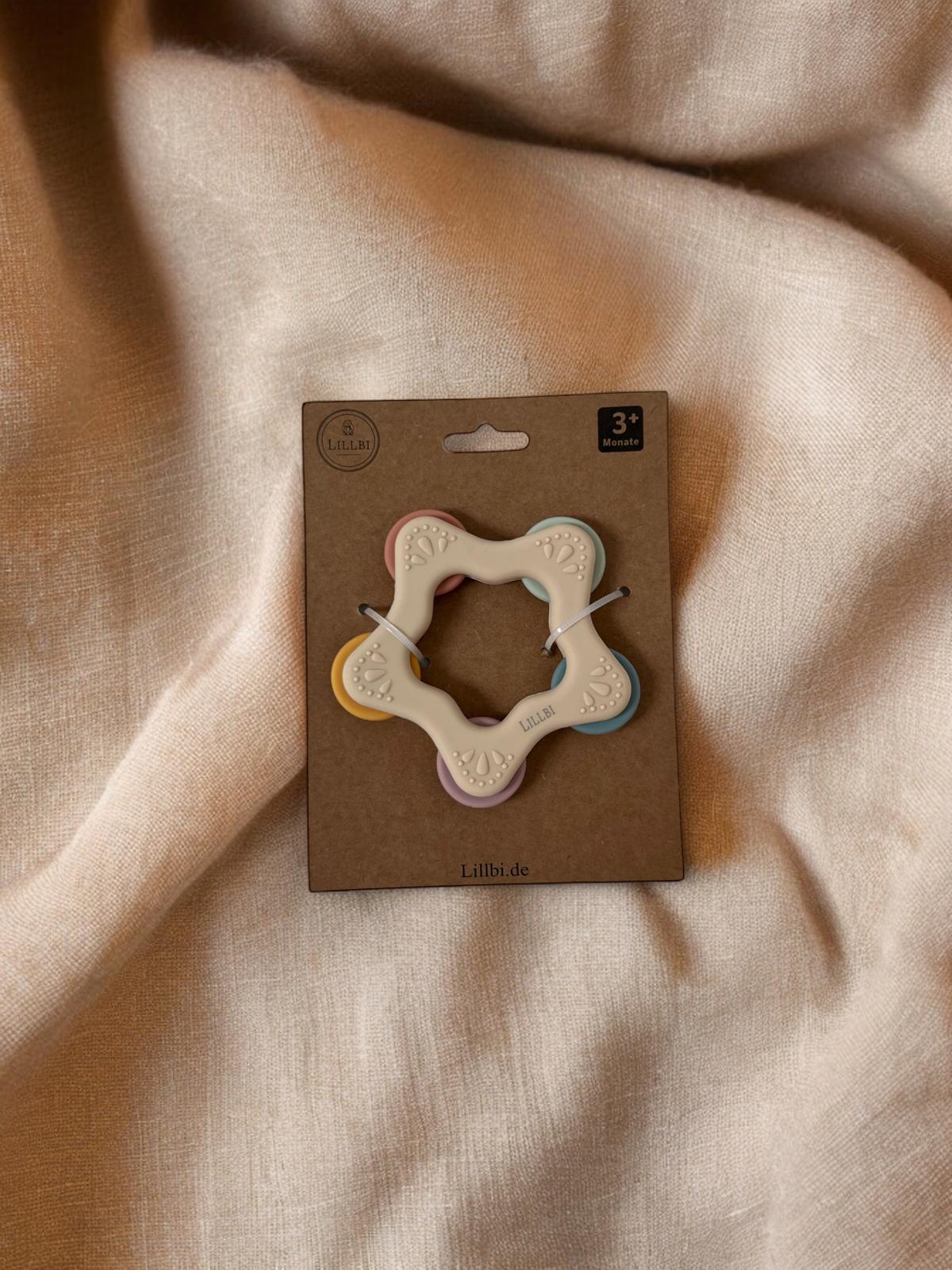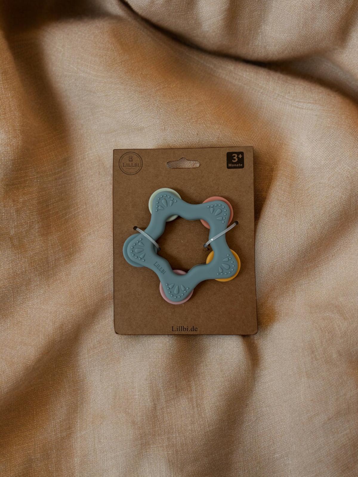 Discover our star teether – a perfect addition to your baby's play and development. With its sensory design and 5 pivot points, this colorful toy promotes motor skills and is fun. Its handy shape makes it easy to hold and encourages fine motor skills, while also teaching grasping and hand-eye coordination.