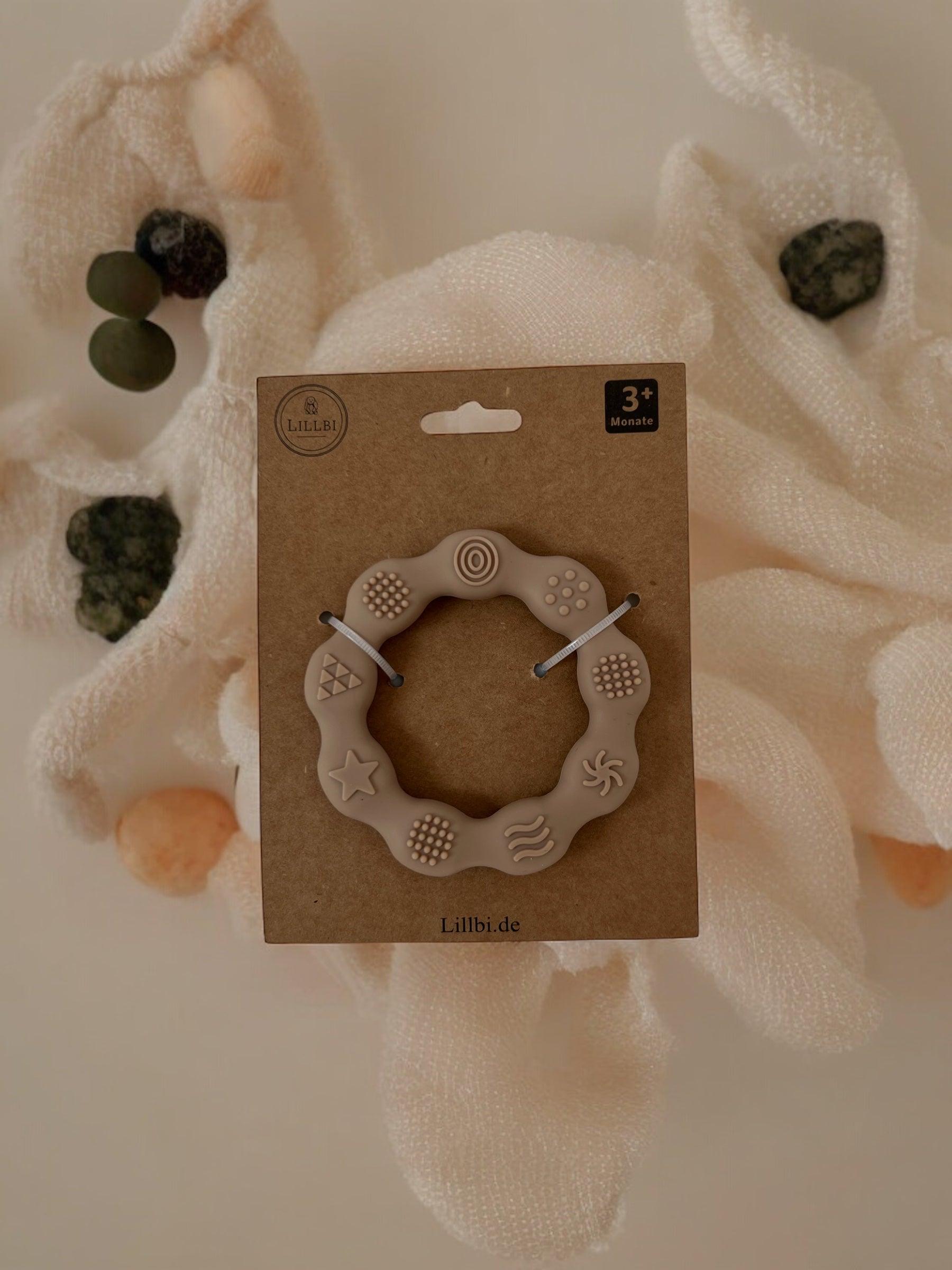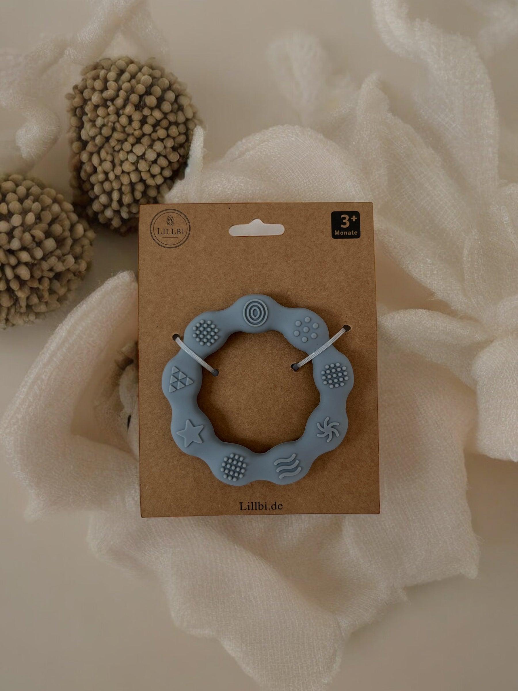 Tauche ein in die Welt des Komforts und der Erleichterung für dein Baby mit unserem sensorischen Beißring aus Silikon. Dieses einzigartige Produkt wurde sorgfältig entwickelt, um den empfindlichen Zahnfleischbedürfnissen deines Babys gerecht zu werden. Mit seinen sanft geformten Texturen und Oberflächen bietet der Beißring sowohl beruhigende Stimulation als auch lohnende Kaumöglichkeiten.