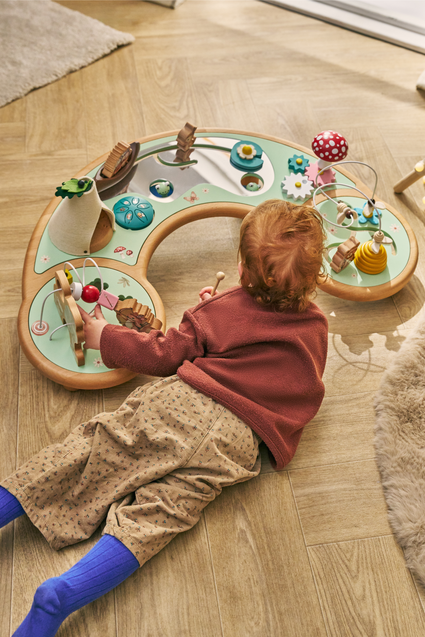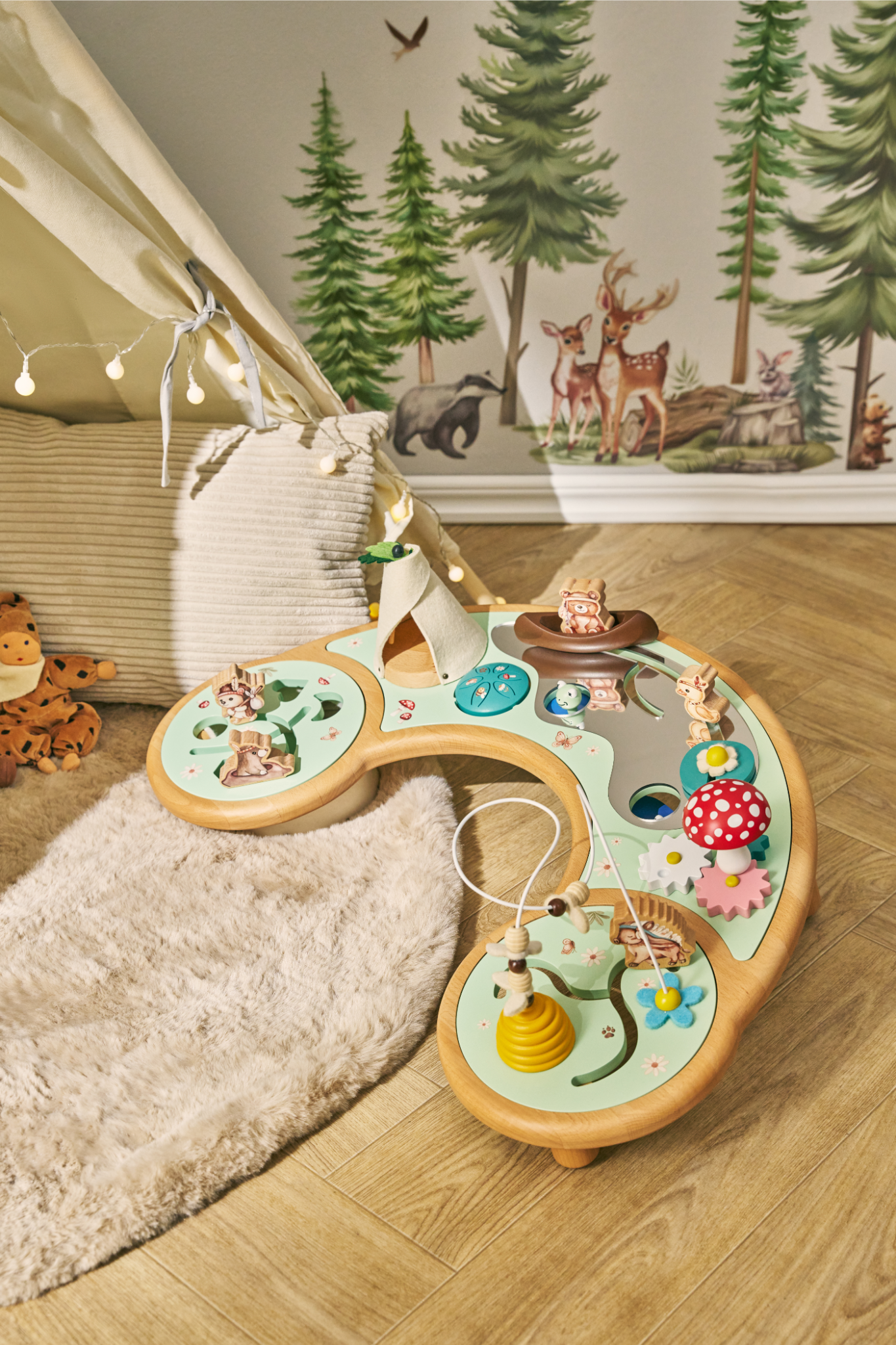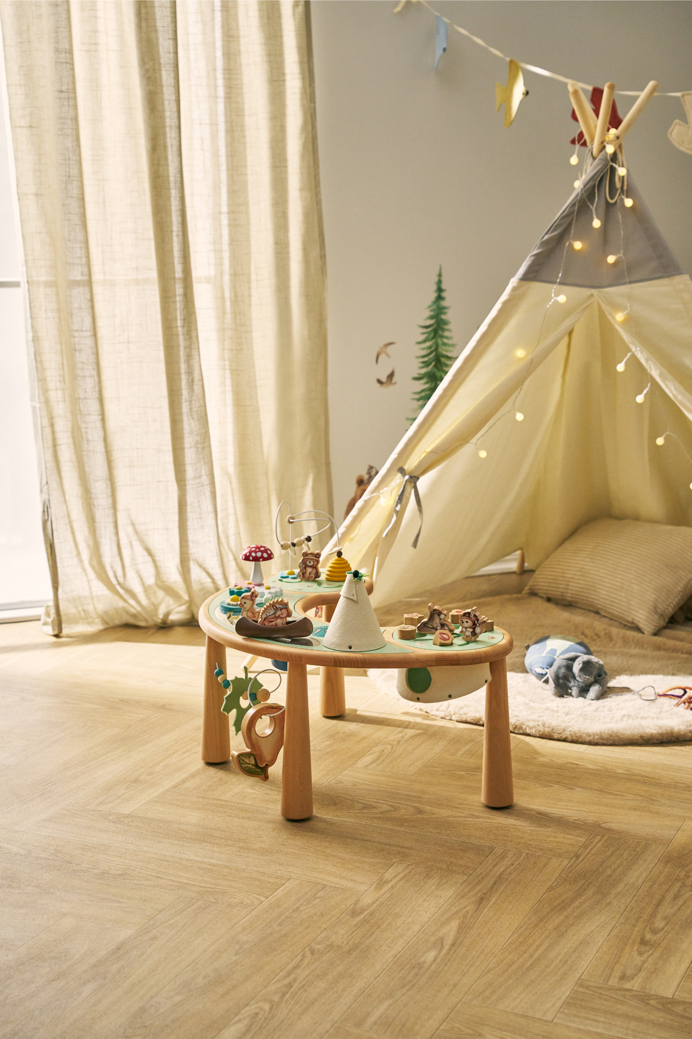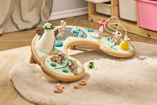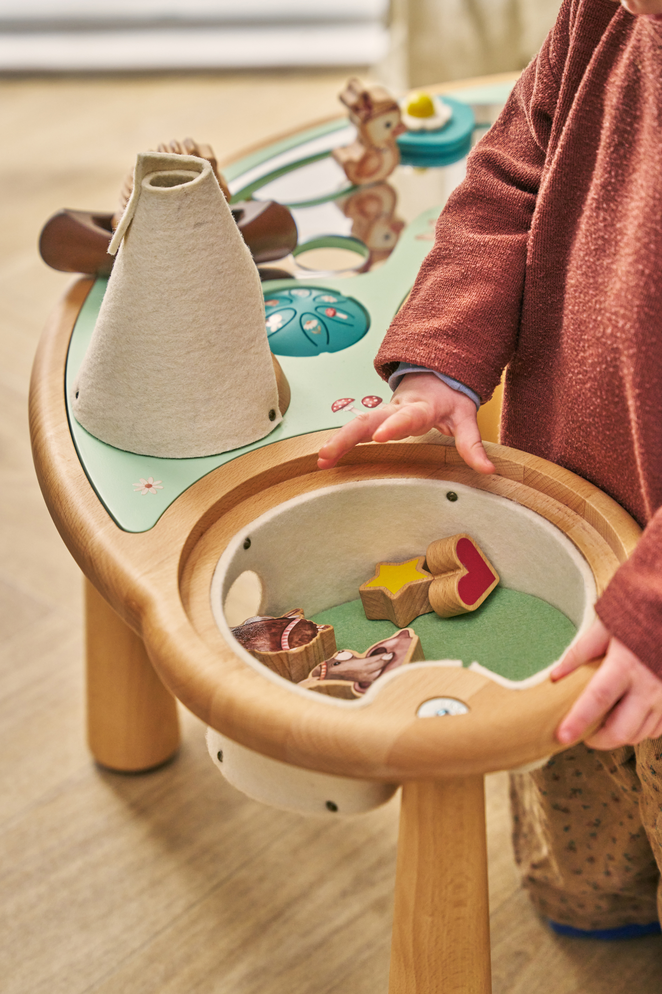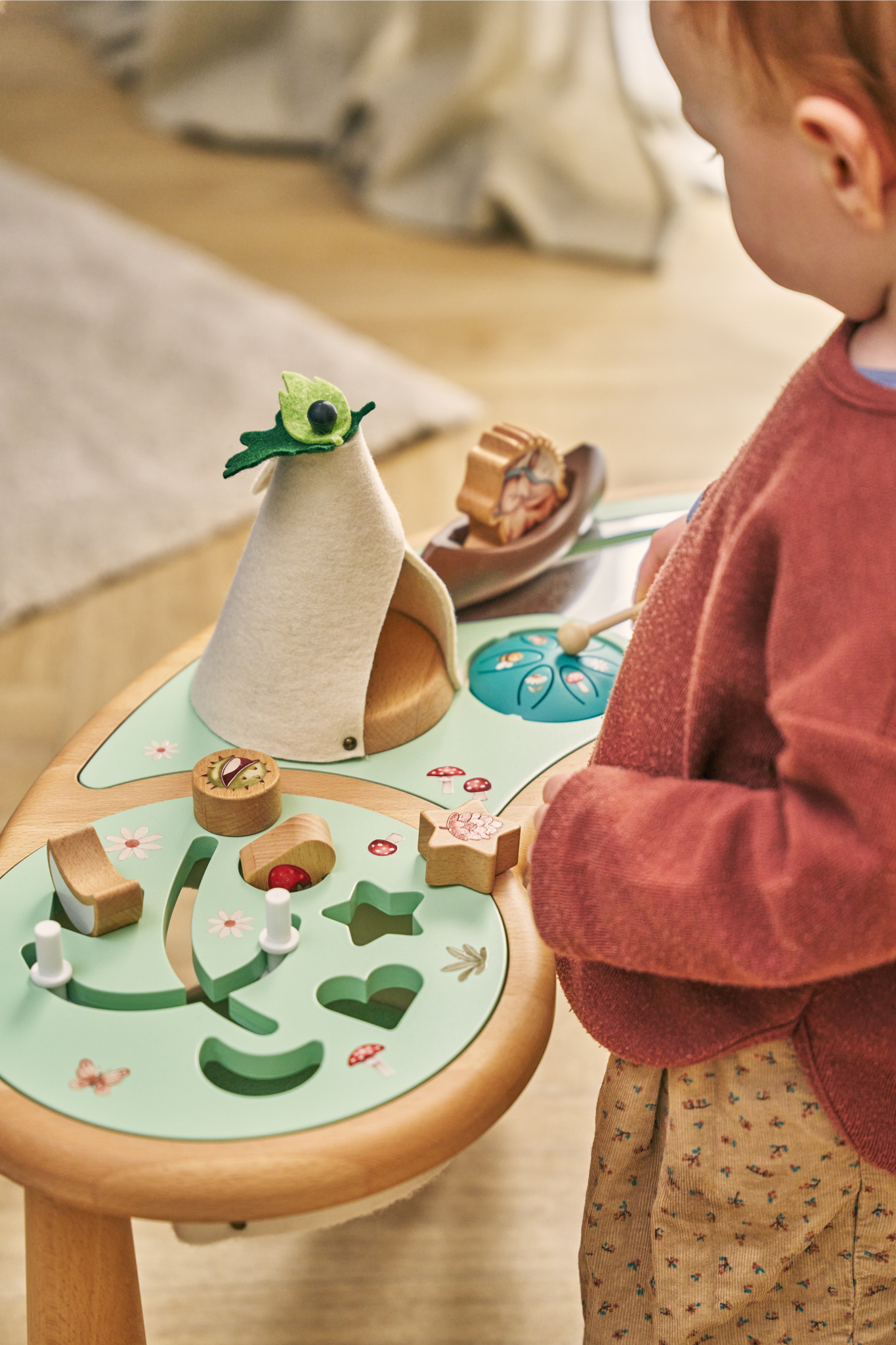 Sanfte Handpan-Klänge, leise Rasselgeräusche, das Klingeln des Fliegenpilzes und drehende Zahnräder machen das Modul zu einer vielseitigen Klang- und Bewegungswelt. Spielerisch werden Feinmotorik, Sinneswahrnehmung, Ursache-Wirkung-Verständnis und Fantasie gefördert – in einer Welt, aus der immer neue Geschichten entstehen.