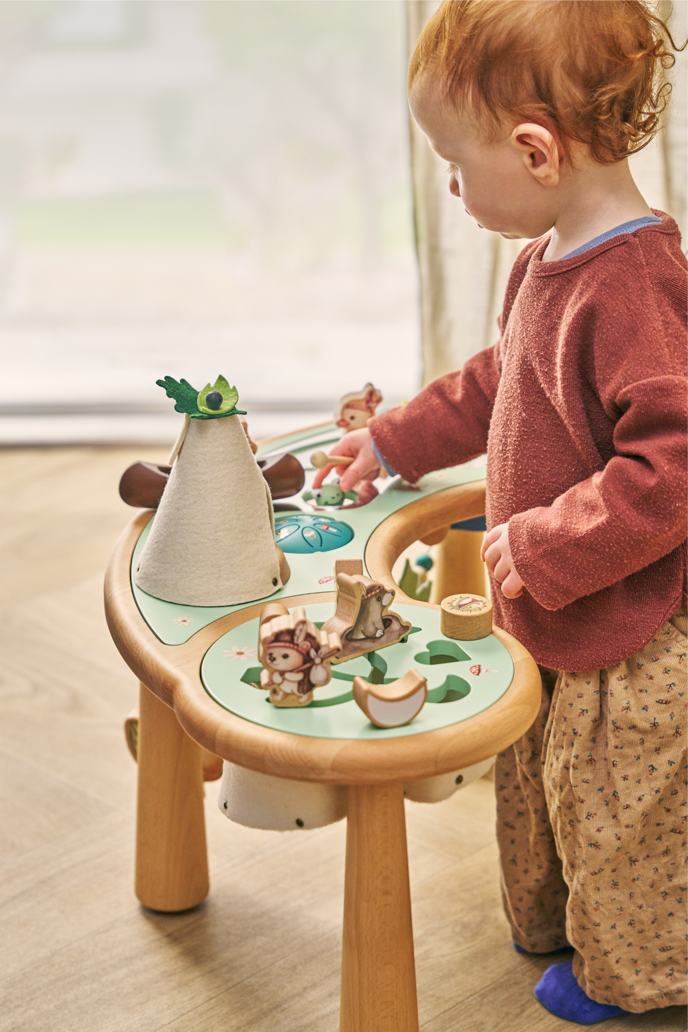 Das Zusammenspiel aus Klopfen, Wackeln, Sammeln und Bewegen fördert spielerisch Feinmotorik, Wahrnehmung, Ursache-Wirkung-Verständnis und Fantasie – und lässt immer wieder neue Waldgeschichten entstehen.