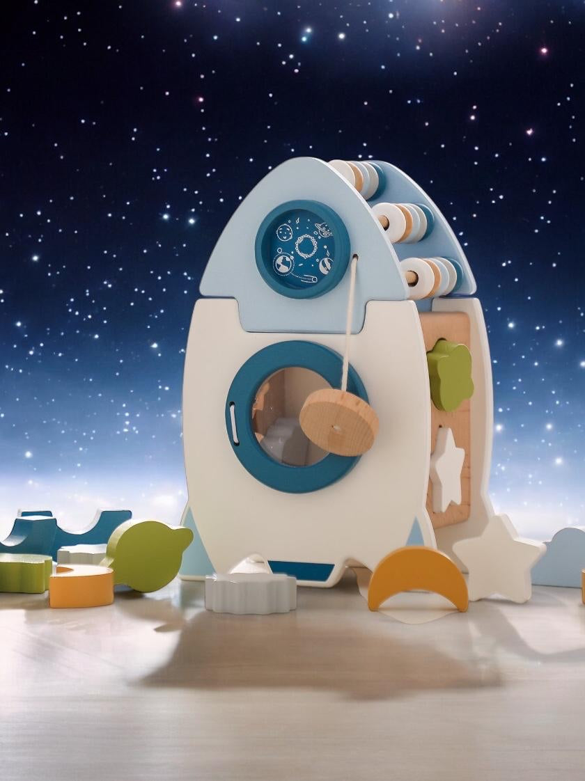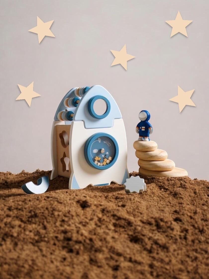 Mit der Motorik-Rakete verbesserst du spielerisch die Feinmotorik deines Kindes und förderst gleichzeitig seine Vorstellungskraft. Das hochwertige Design aus Buchenholz und die sicheren Farben garantieren unbeschwerten Spielspaß und eine aufregende Reise ins Weltall!