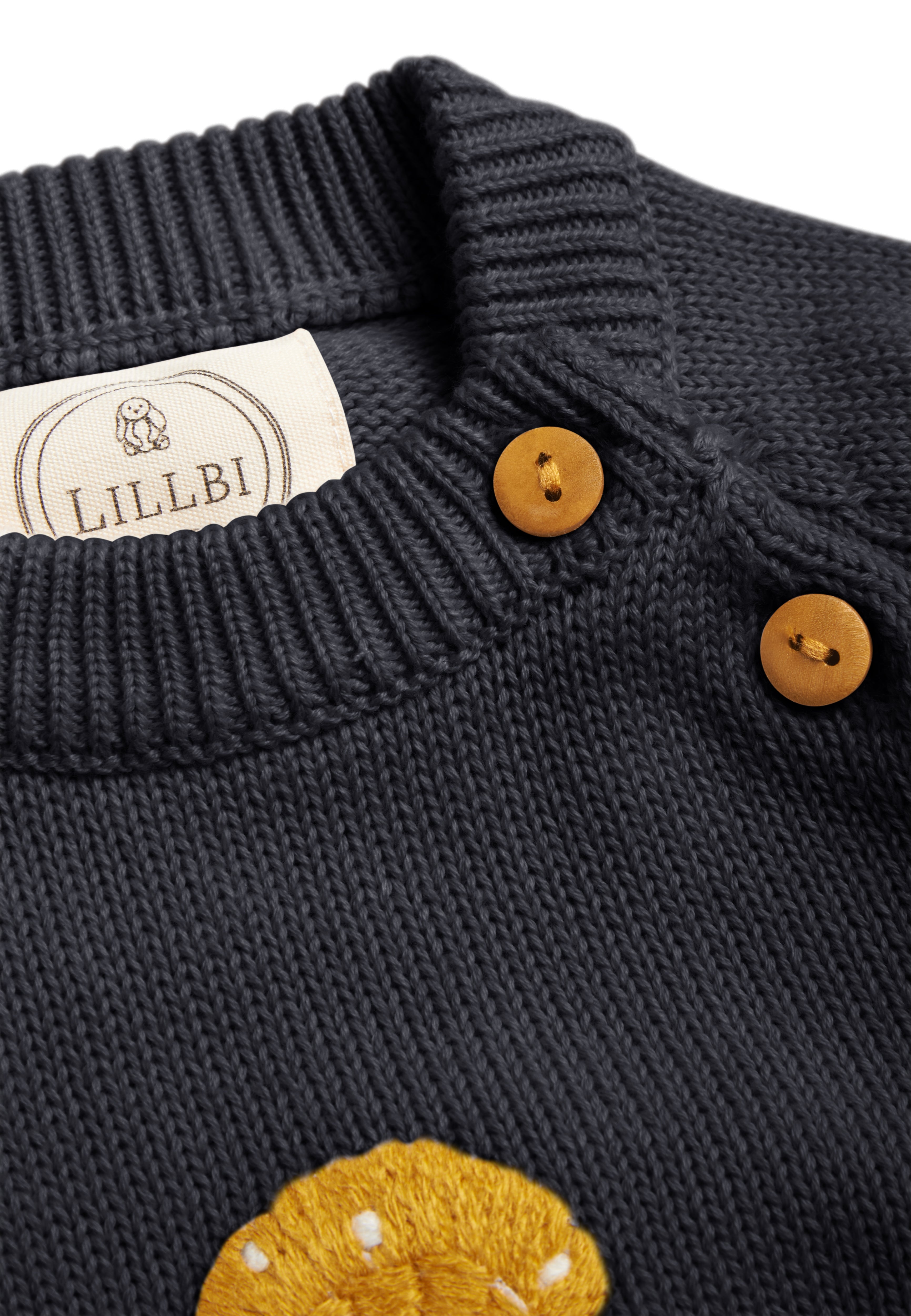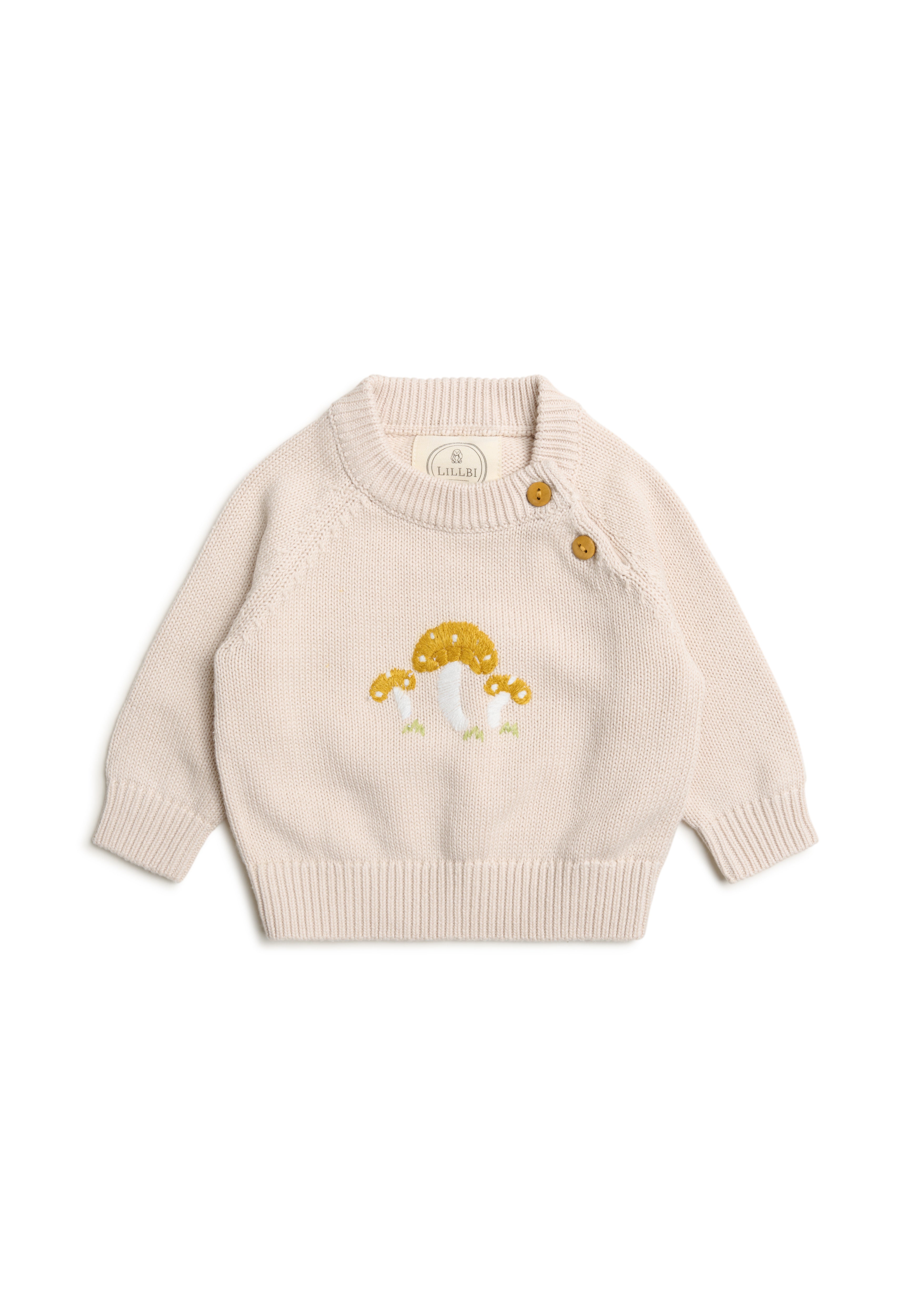 - Einzigartiges Design: Der Strickpullover "Fliegenpilz" besticht durch ein handgestricktes Fliegenpilzmuster, das deinem kleinen Schatz einen besonderen Look verleiht.